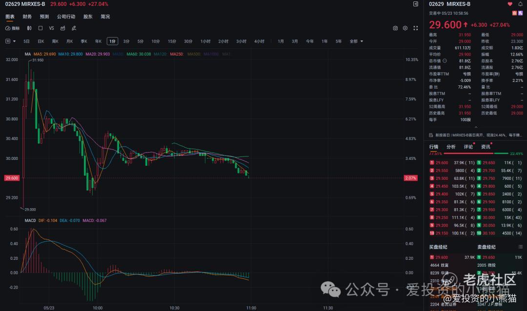 另一个字母股MIRXES-B觅瑞来了个套路回拨,首日也高开24.46%