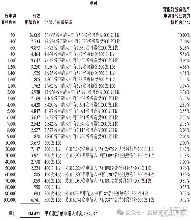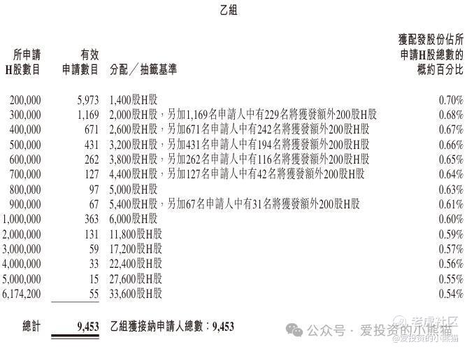 下面这个是公开资料的乙组官方披露的顶头槌认购中签名单: