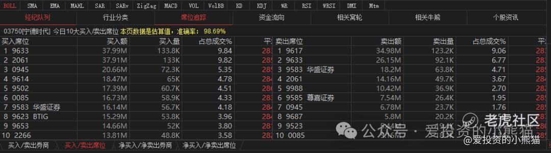 对比宁德时代和恒瑞医药的暗盘买盘机构,9633都是一马当先,宁德时代的9633,2061,0945,0085,9623btig,2266,这些是经常出现的机构,还有9614,9502,9583华盛,9653,这些也买了不少的,并且宁德时代和恒瑞医药的散户席位2061买的也不少。
