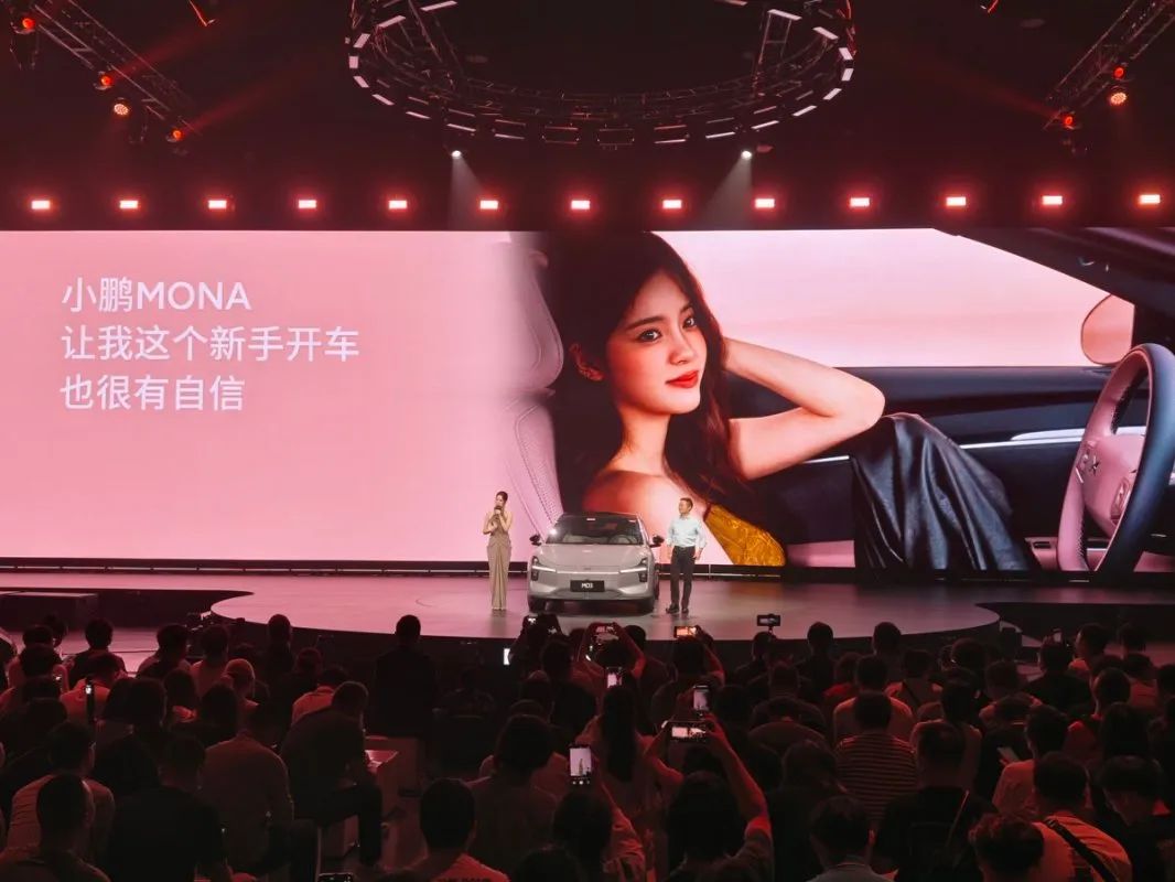 何小鹏与欧阳娜娜共同介绍MONA M03 Max智能辅助驾驶功能,来源:小鹏汽车