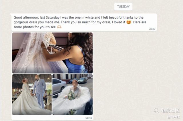对方发来了自己的婚礼照片,露出灿烂的笑容的照片覆盖了之前对话中的各种顾虑和担忧。她留言告诉刘勇:“亲爱的,上周六我穿上你的婚纱走进了婚姻。谢谢这件美丽的婚纱,让我拥有了梦想中的一天。”