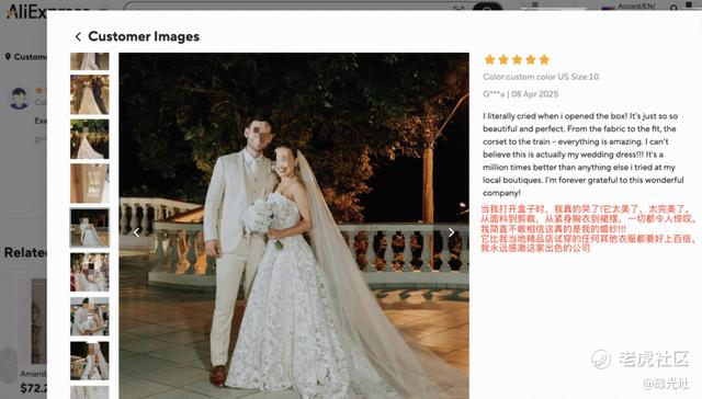 美国一对新人在速卖通买家秀上晒出了婚纱照和感谢信