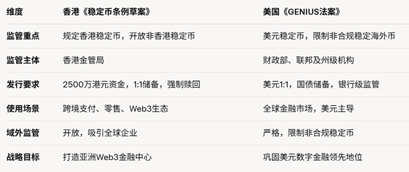 相同之处是,两地都要求稳定币的发行需1:1锚定法币,每月公开储备资产构成,接受审计;都要求严格遵守反洗钱(AML)和了解客户(KYC)的要求;