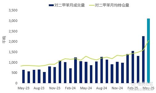 对二甲苯2025年5月首次突破300万吨;持仓量创纪录达210万吨。