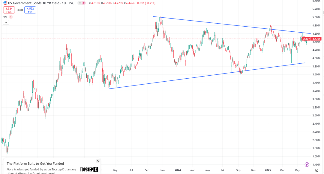 既然4.5%-5.0%的国债收益率和99的美元指数无法让白宫感受到紧缩财政的重要性,那可能就有新的压力位。