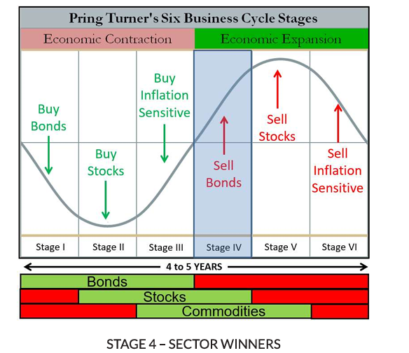 如果你一定要把所有品种放在一起,感受到的是债券稍微萎靡,股票和商品相对不错的情况,放在以前的经济周期理论中,这更类似一个复苏中期。