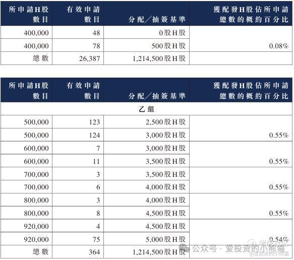下面这个是公开资料的乙组官方披露的顶头槌认购中签名单: