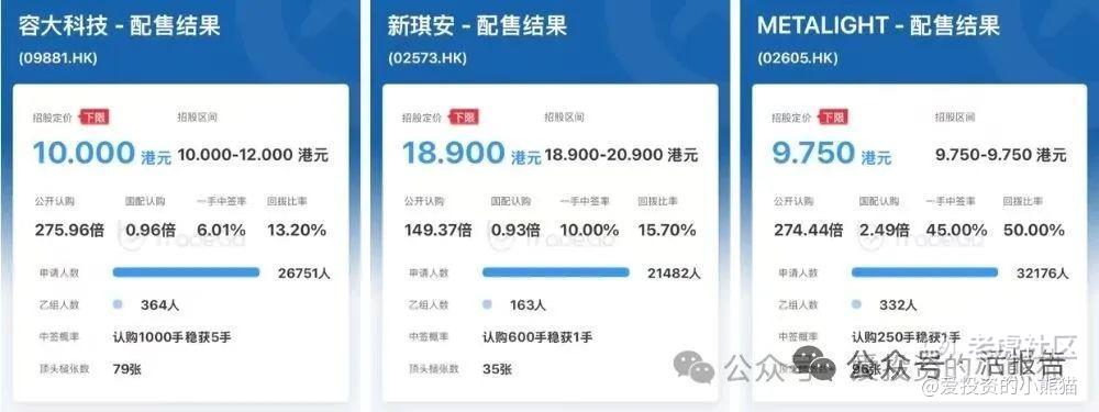 这次上市的三个新股都是孖展超百倍的,认购相当火爆,今年打新行情已进入牛市了, 无论什么新股都是抢着认购,结果是有套路回拨的大涨,无套路的大跌。所谓“套路回拨”,即如果国际发售认购不足,若公开发售超过100倍,也可以启动20%的回拨,代价是必须下限定价。