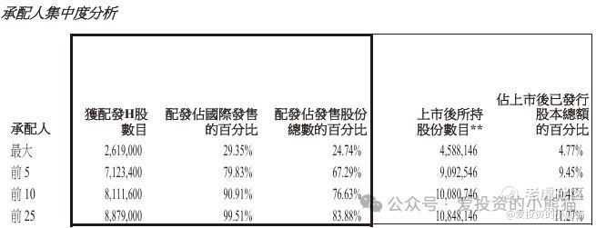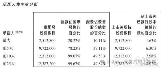 新琪安(02573.HK)国配货是很集中,前25大承配人上市后所持股份数目占上市后已发行股份总数11.27%。新琪安(02573.HK) 这个票稳价人是民银证券,绿鞋失效。