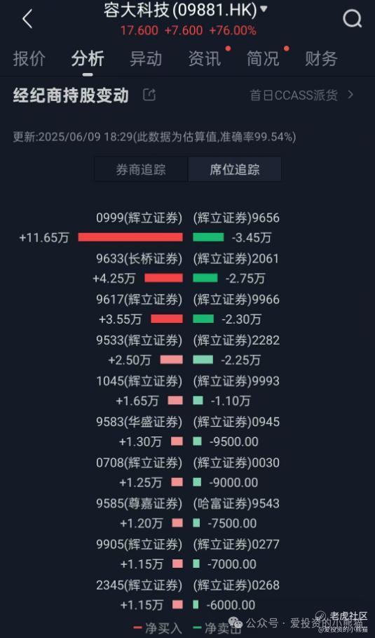 容大科技(09881.HK)买盘席位有0999,9633,9617.