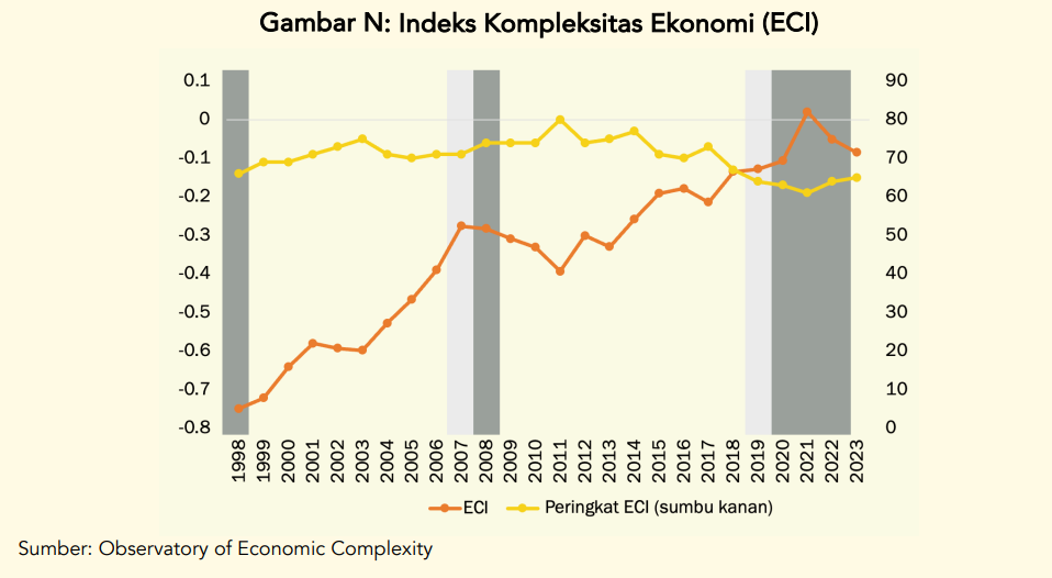 这种制造业发展的落后,导致印尼的经济复杂度虽然在上升,但排名却在下降