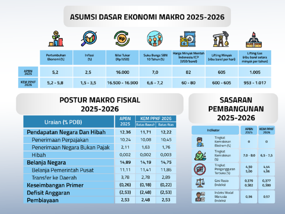 在上个月,印尼发布了他们2026年的经济发展和财政计划,叫做KEM- PPKF 2026,他们希望在油价走低的时候,依然能够实现更快的经济增速,平稳的通胀,和稳定的失业率,同时赤字保持稳定。