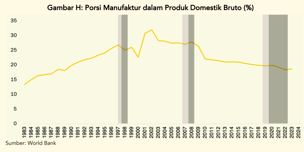 而其实印尼的制造业如果得不到改变,其实可以说岌岌可危,一方面制造业的占比本身在萎缩