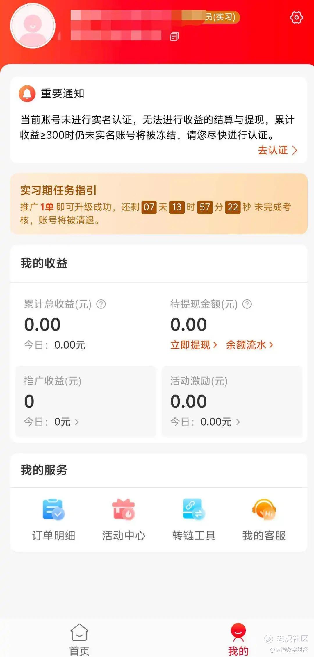 推广的总收益、推广收益、提现金额、活动激励等重要信息会保存在个人中心内。