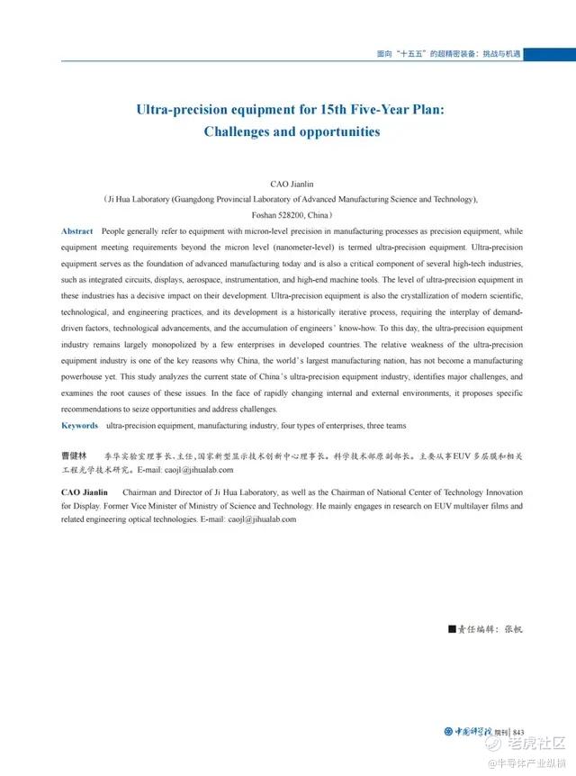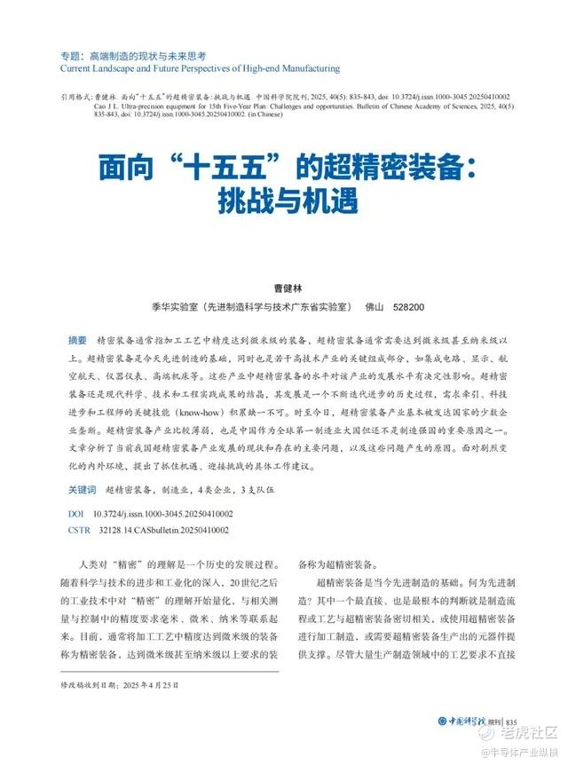 曹健林:面向“十五五”的超精密装备挑战与机遇!
