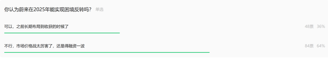 结尾按照惯例,先聊聊上一轮对于蔚来困境反转预期的投票的情况: