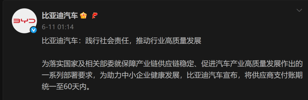 上周有个新闻很火爆,最新的情况是目前大多数车企都承诺了,给供应商的账期缩短到60天以内。