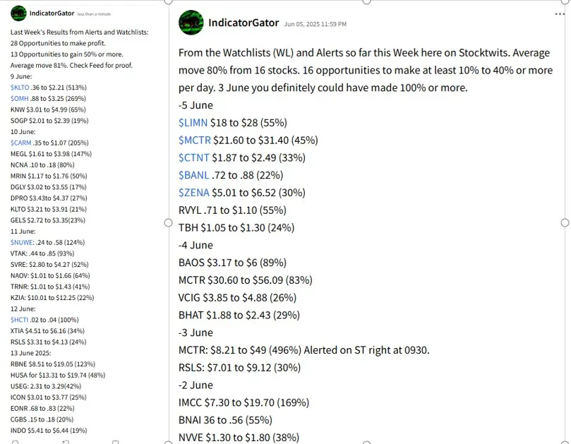 $休斯敦能源(HUSA)$ 这周还没过完,战果已够吹三年。17个捡钱机会,11次躺赚50%+。附赠前两周收益图,懂的都懂。订阅追踪别掉队,吃肉喝汤不迷路。6月16日战绩:$Battalion Oil Corp(BATL)$ 132%飞天,$SRM Entertainment, Inc.(SRM)$ 113%窜云,$斯塔克工业(STAK)$ 61%稳健,$SAVERONE 2014 LTD(SVRE)$ 47%小跑,$AIRO Group Holdings(AIRO)$ 26%踱步,$Oceanpal Inc(OP)$ 16%龟速,$Sonim Technologies Inc(SONM)$ 15%蠕动。6月17日狂欢:$休斯敦能源(HUSA)$ 96%暴走,$Salarius Pharmaceuticals Inc(SLRX)$ 93%疾驰,$CERo Therapeutics Holdings, Inc.(CERO)$ 86%狂飙,$Acurx Pharmaceuticals, LLC*(ACXP)$ 63%跃进,$Processa Pharmaceuticals, Inc.(PCSA)$ 53%爬坡。6月18日续命:$Leishen Energy Holding Co., Ltd.(LSE)$ 71%逆袭,$长安能源(PTLE)$ 69%反转,$Reliance Global Group, Inc.(RELI)$ 52%突围,$Aptevo Therapeutics Inc.(APVO)$ 42%缓涨,$Ryde Group(RYDE)$ 11%磨叽。