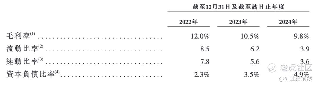 因此,这也影响了公司整体毛利率的下滑,报告期内分别为12%、10.5%及9.8%,2024年的整体毛利率已经跌破10%。