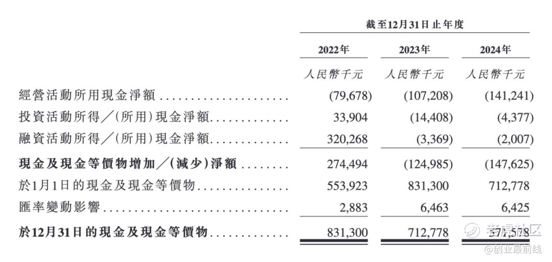 各期末的现金及现金等价物逐年减少,分别约为8.31亿元、7.13亿元和5.72亿元。经营性现金流净额连续3年为负,分别为-7967.8万元、-1.07亿元和-1.41亿元。