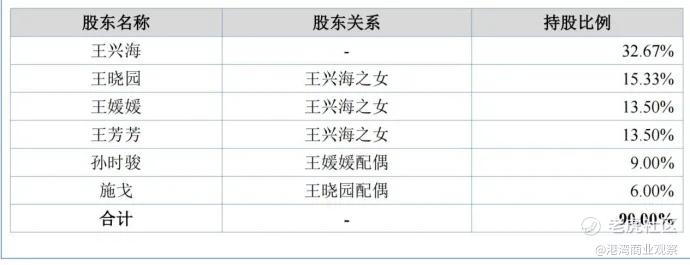 其中,王晓园、王媛媛、王芳芳均系王兴海之女,孙时骏系王兴海之女王媛媛的配偶,施戈系王兴海之女王晓园的配偶,并且王晓园还通过嘉兴土拔、嘉兴永思持有公司5%的股权,简言之,王兴海及其女儿女婿合计控制公司95%的表决权。
