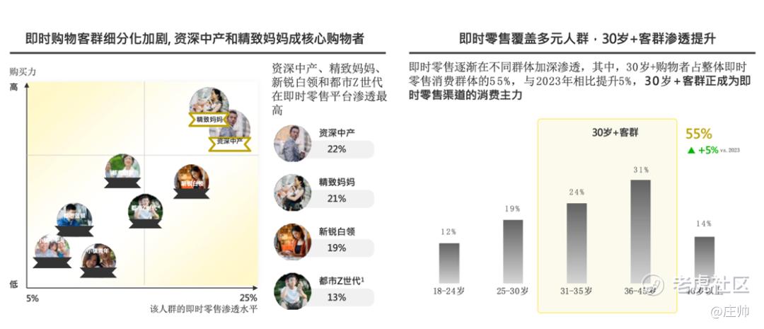 凯度咨询最新调研了覆盖全国337个城市的2000名消费者,30岁以上群体首次以55%的占比成为即时零售主力军,资深中产、精致妈妈、新锐白领和都市Z世代,正将即时零售从应急采购渠道升级为日常补给中枢,推动客单价实现连续三年稳步增长。
