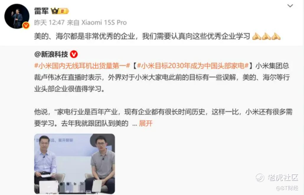 雷军“向美的海尔学习”的公开表态,已暗示行业格局重构进入倒计时。小米能否取代格力成为白电新三强,我们拭目以待。
