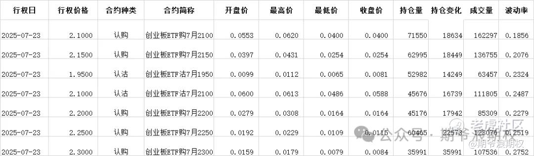 (3)创业板ETF期权:7月最大持仓范围2000-2100,今收2.093,下跌0.76%,期权7月主力合约,认购认沽全都是增仓,认购集中在2050-2300之间,合计11.8W张;而认沽全是增仓,集中在1850-2100之间,合计5.8W张。变化超过1W张的具体如下图: