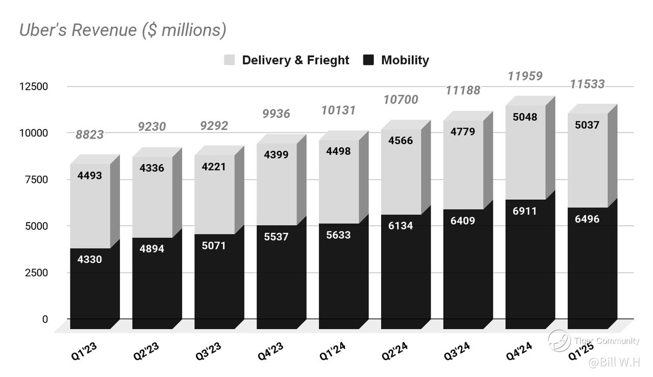 优步Q1 2025业绩的稳健表现,主要得益于以下几方面: