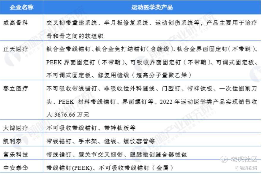 中国骨科植入医疗器械企业运动医学产品布局 来源:前瞻产业研究院