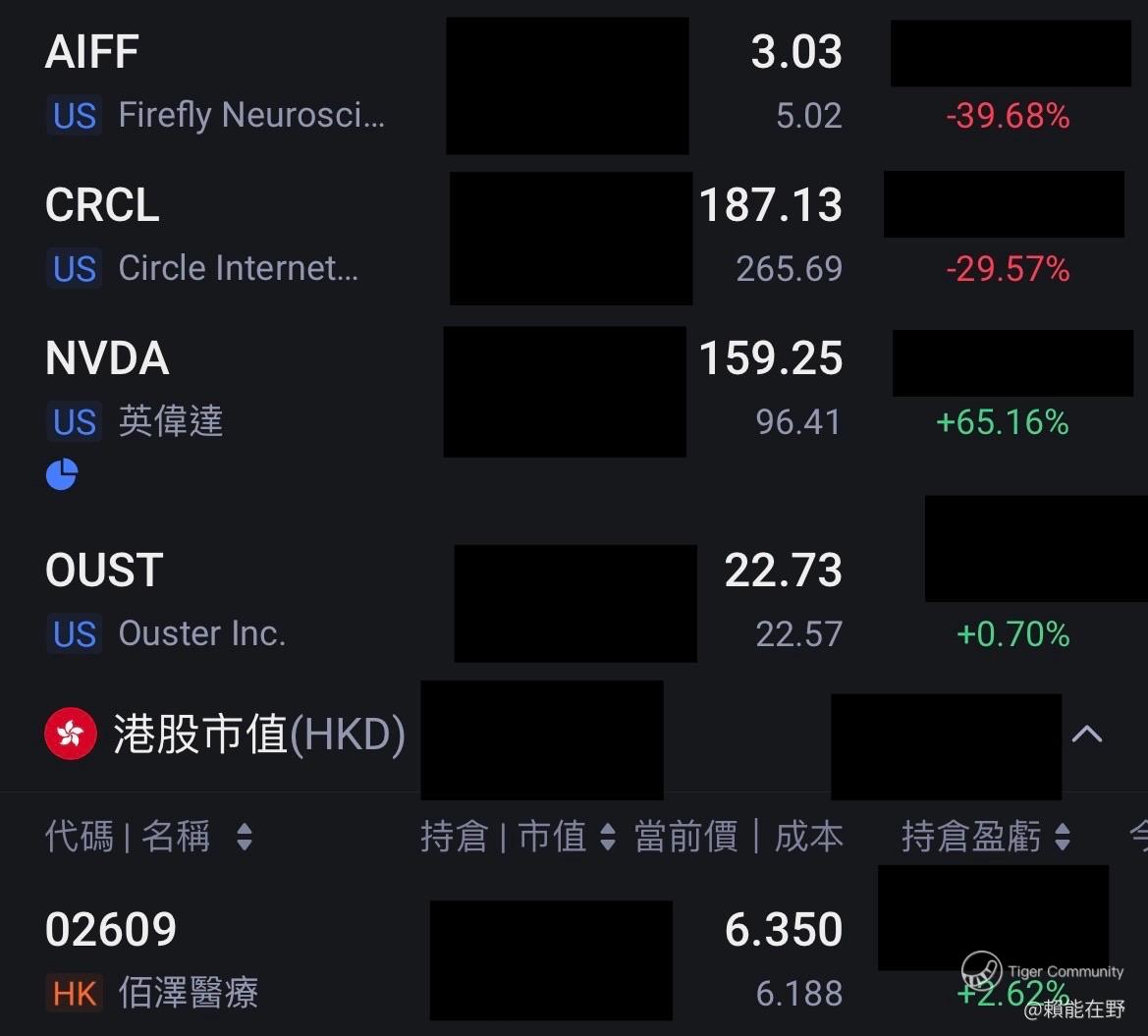 我既持仓中,好似NVDA呢种,就受惠于慢升,每日都录得盈利,相反CRCL 及 OUST呢种热炒既股票,系呢段时间表现就差好多。