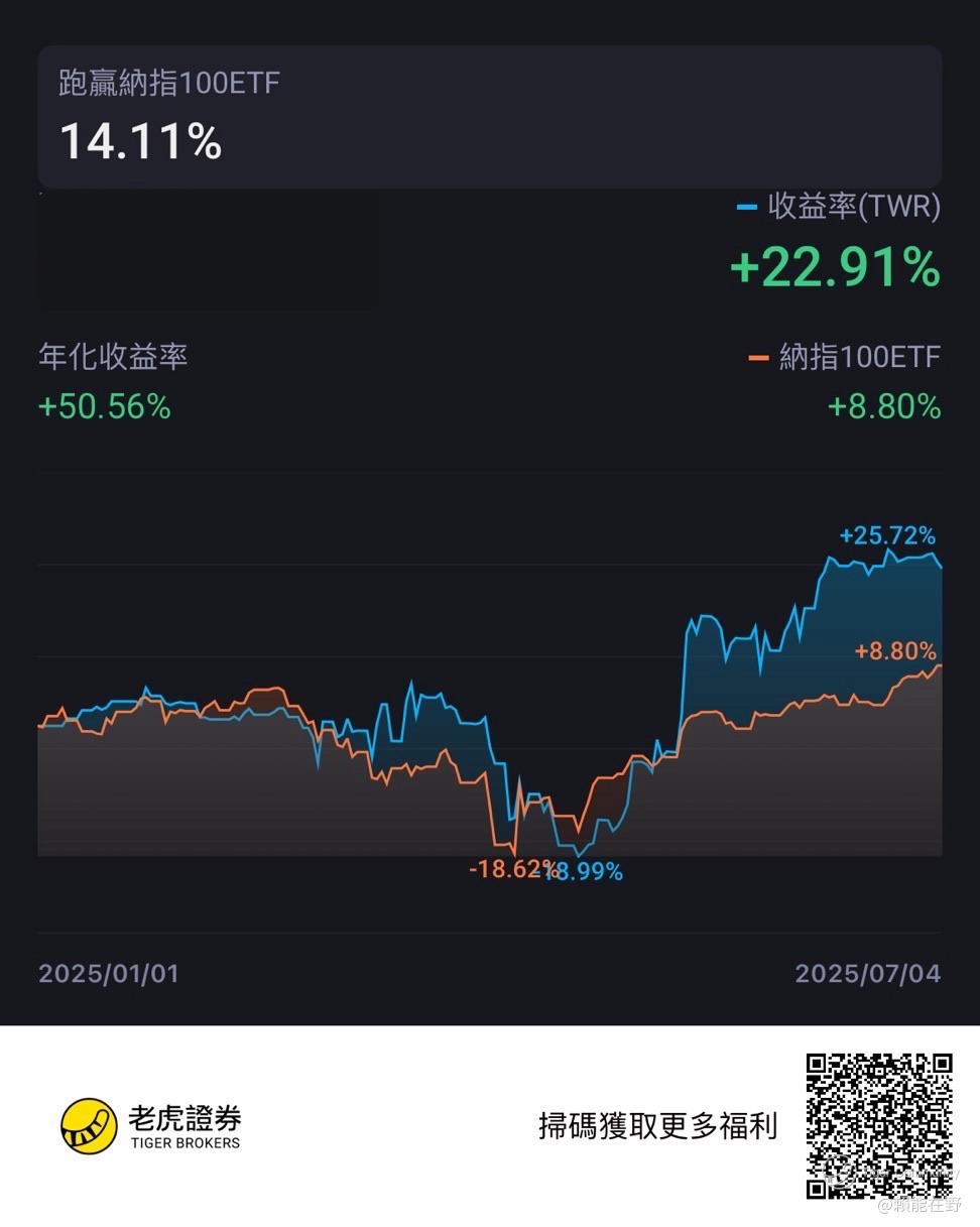 上半年我对我投资组合表现十分满意,但比一众高手系远远不及,之不过能够跑赢QQQ,我已经好满足。