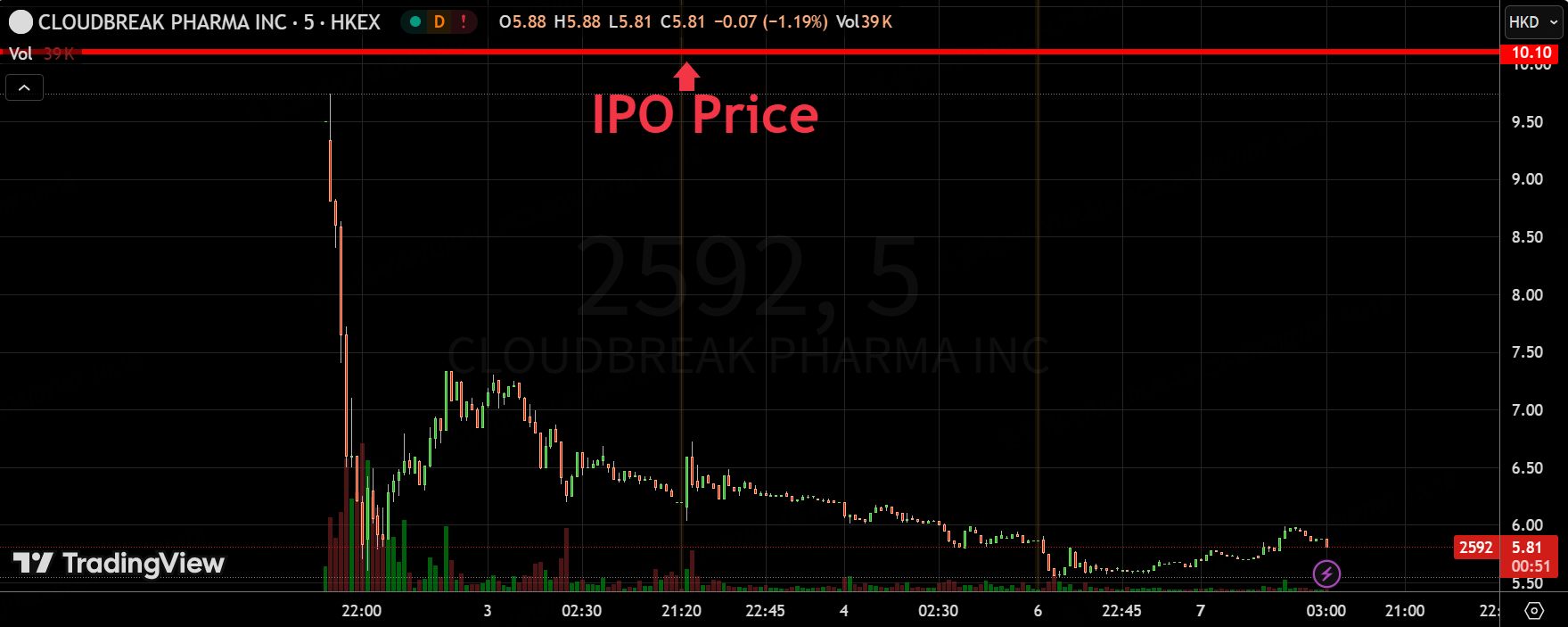 先说说这个票有多惨。上市首日直接低开5.9%,最高冲到9.74港元后就一路跳水,最后收盘暴跌38.6%,市值直接腰斩,随后两天也一直阴跌。要知道,前一天暗盘交易这个票还涨了近5%,让不少投资者以为捡到宝了。结果第二天开盘就现了原形,简直是把"请君入瓮"玩到了极致。