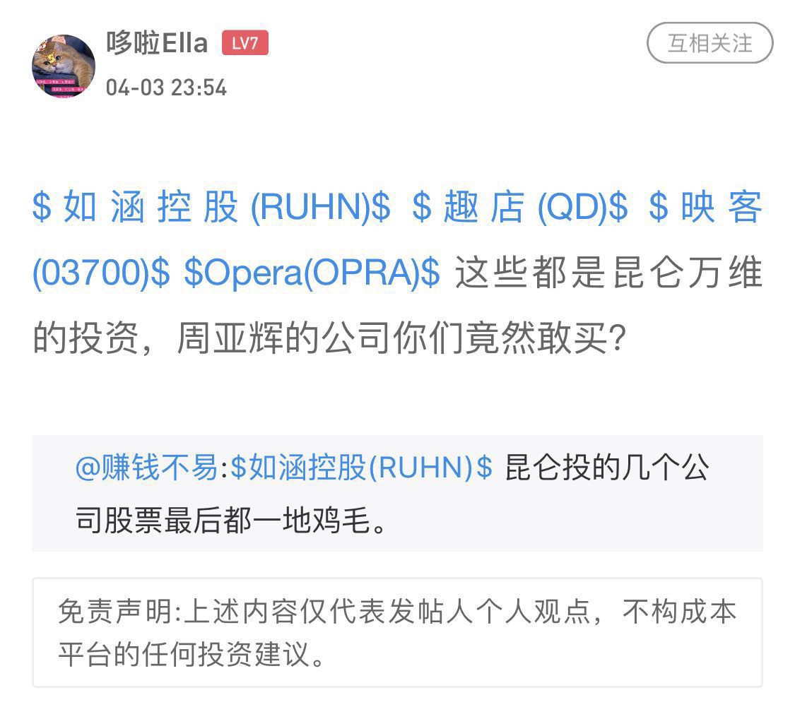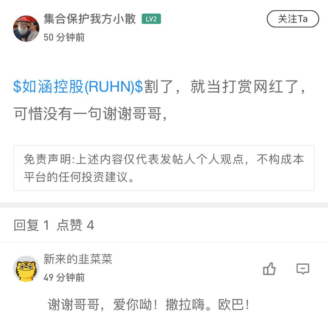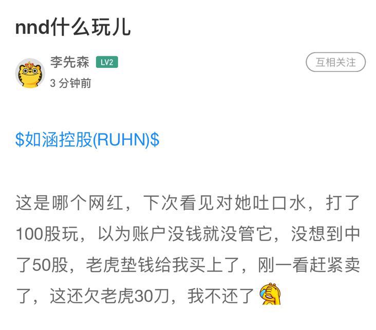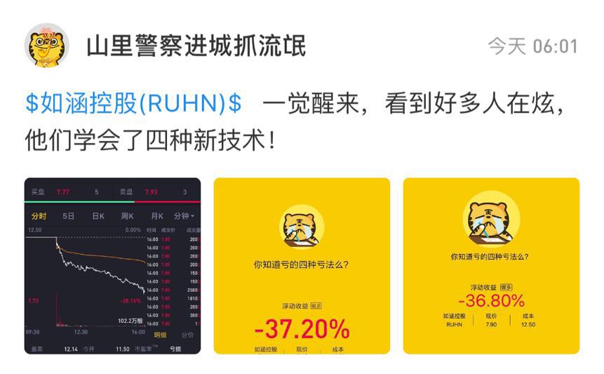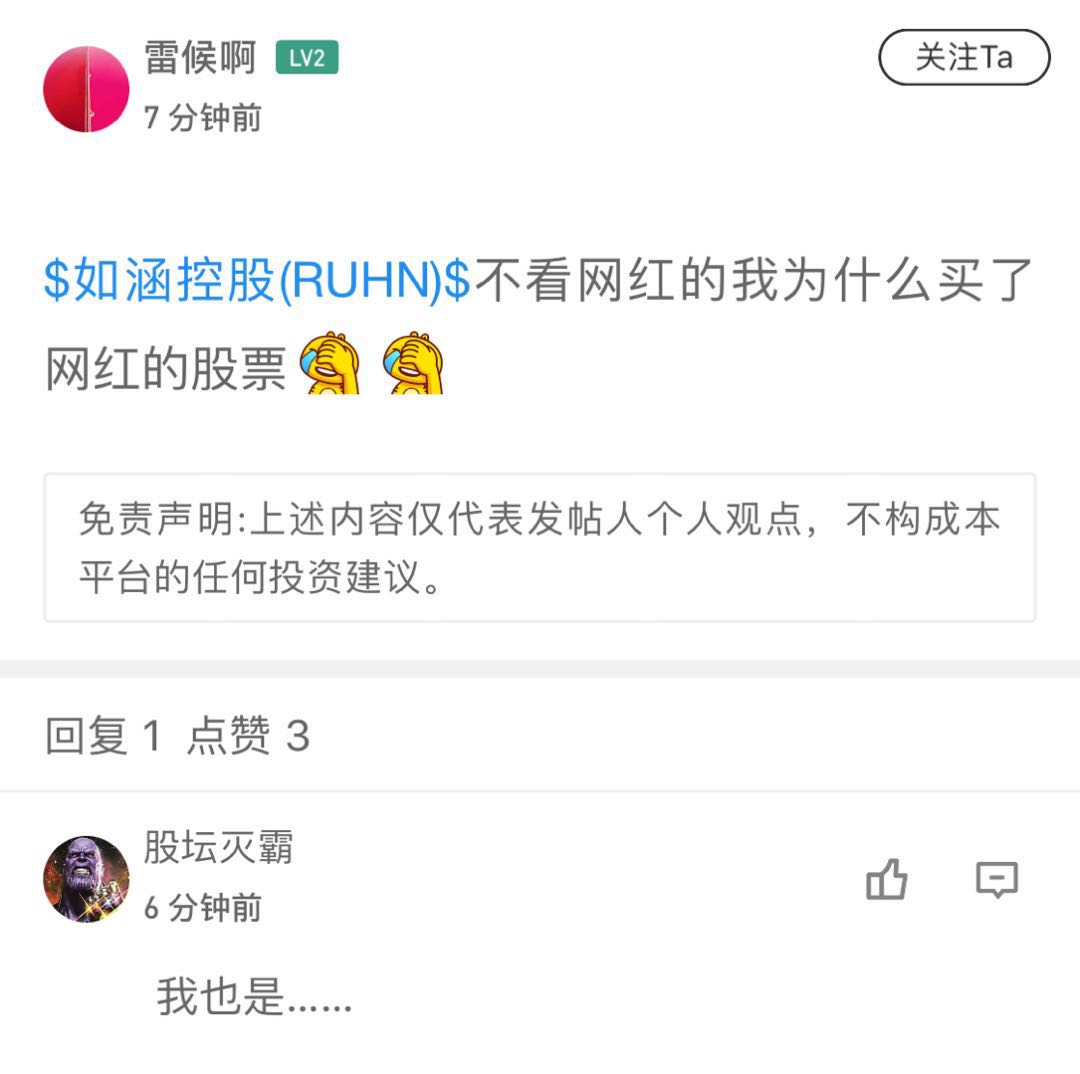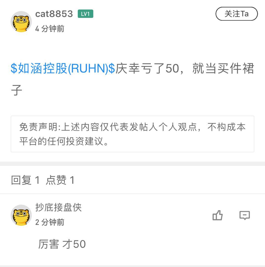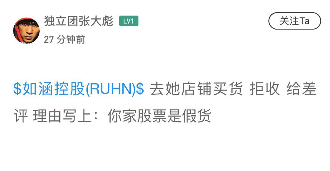 $RUHN(RUHN)$昨晚中概第一颜值股如涵上市,收盘大跌37%。