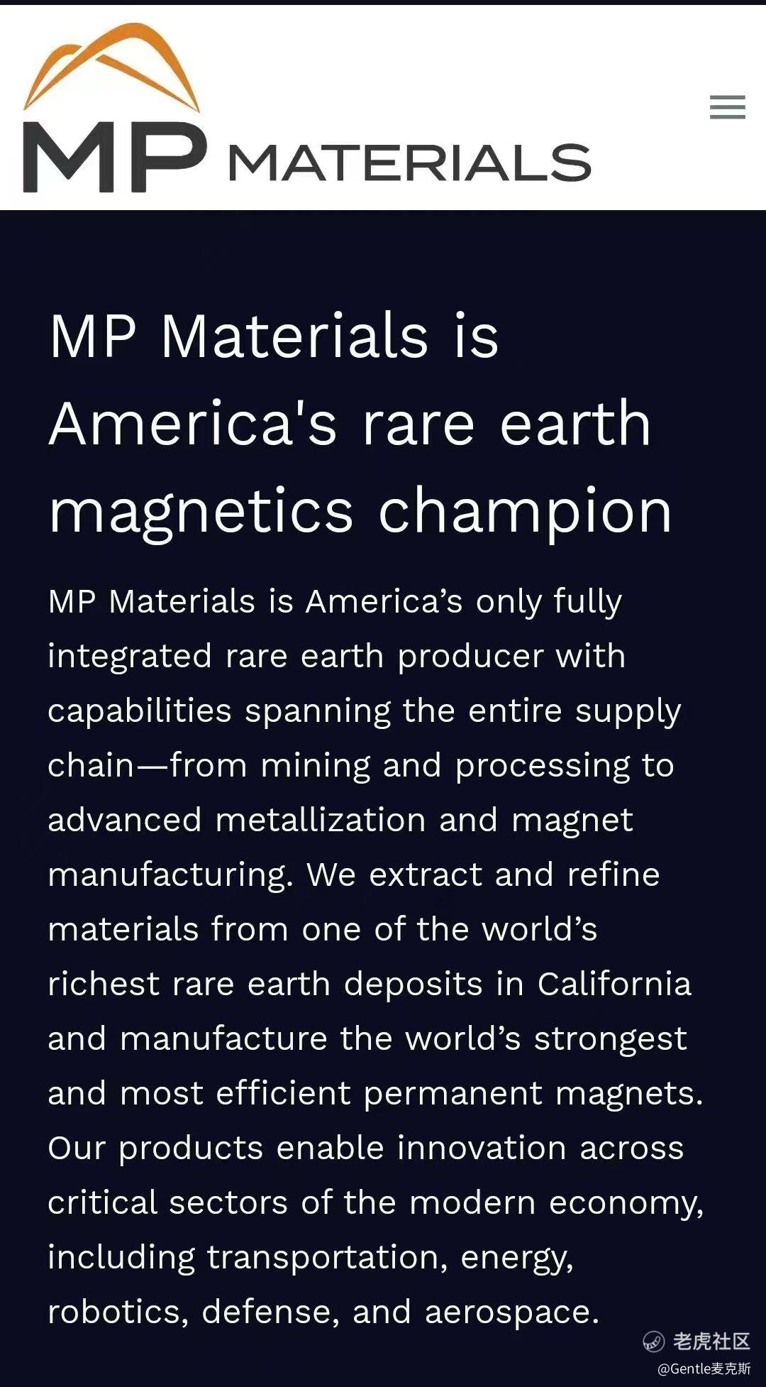 被东大卡脖子以后,老美现在是发了狠要把自家唯一一家上规模的稀土公司$MP Materials Corp.(MP)$ 扶上马。前几天国防部4亿美金入股,昨天传苹果讲5亿美金入股。不过单季度6000万美元的营收,实力还是太弱了,$北方稀土(600111)$ 一季度营收92亿RMB。不过美股稀土股在题材炒作上空间更大,有差距才有想象。[笑哭]
