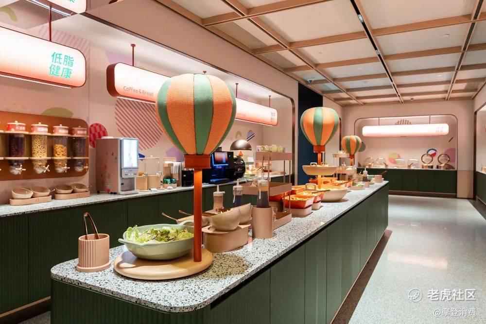 桔子酒店的健康早餐分碳水快乐、低脂健康、咖啡面包三大分区,你可以用酸奶、坚果、谷物等自制一碗能量满满的酸奶碗,还可以用新鲜时蔬、培根等DIY一份活力三明治;酒店还配备24小时健跑房、定制化城市跑步地图……这些措施都在为健康加码。