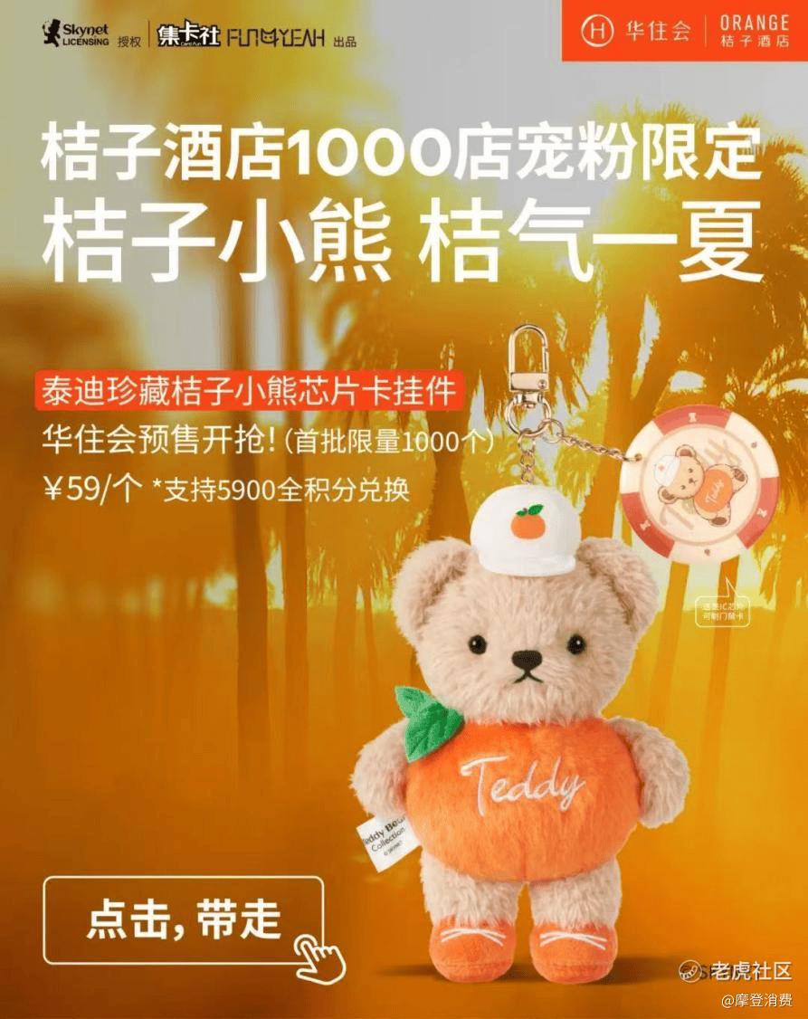 酒店还不时带来新奇惊喜:比如情人节邀请大家组CP“领桔子软糖”,又或是推出桔子1000店宠粉限定「泰迪珍藏 桔子小熊芯片卡挂件」,让年轻人、年轻家庭可以一起带着桔子小熊去旅行,给生活加点“好桔气”。