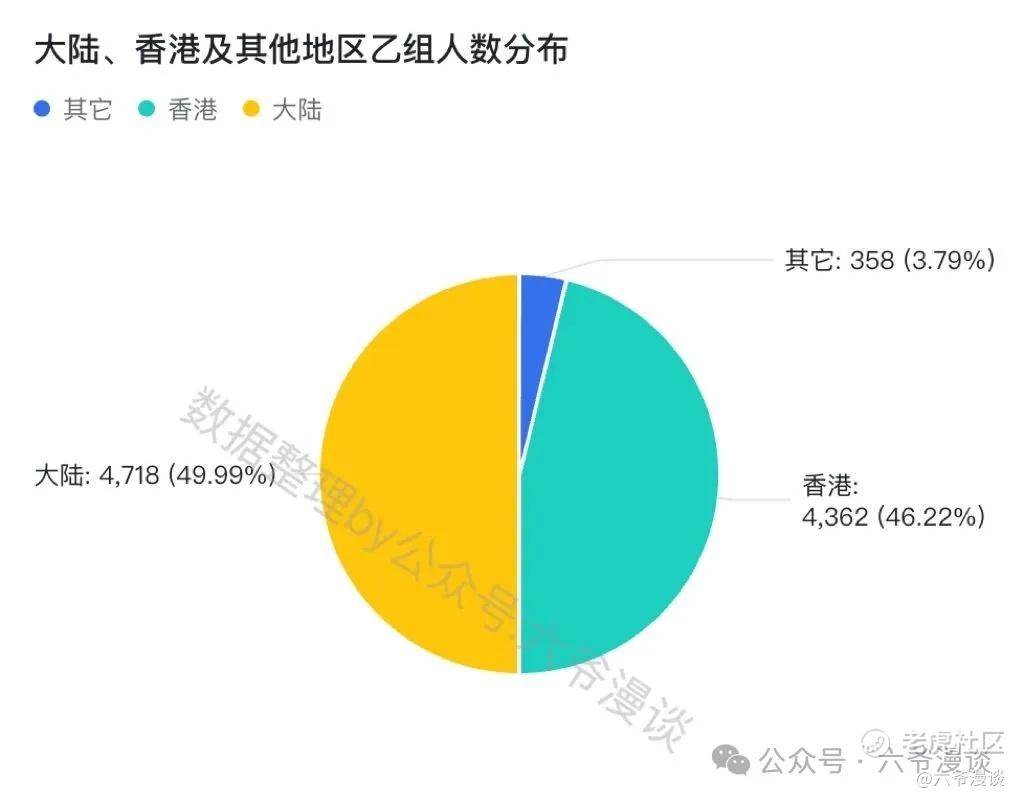 参与乙组认购的,大陆占了49.99%,香港占了46.22%,其它地区占了3.79%。