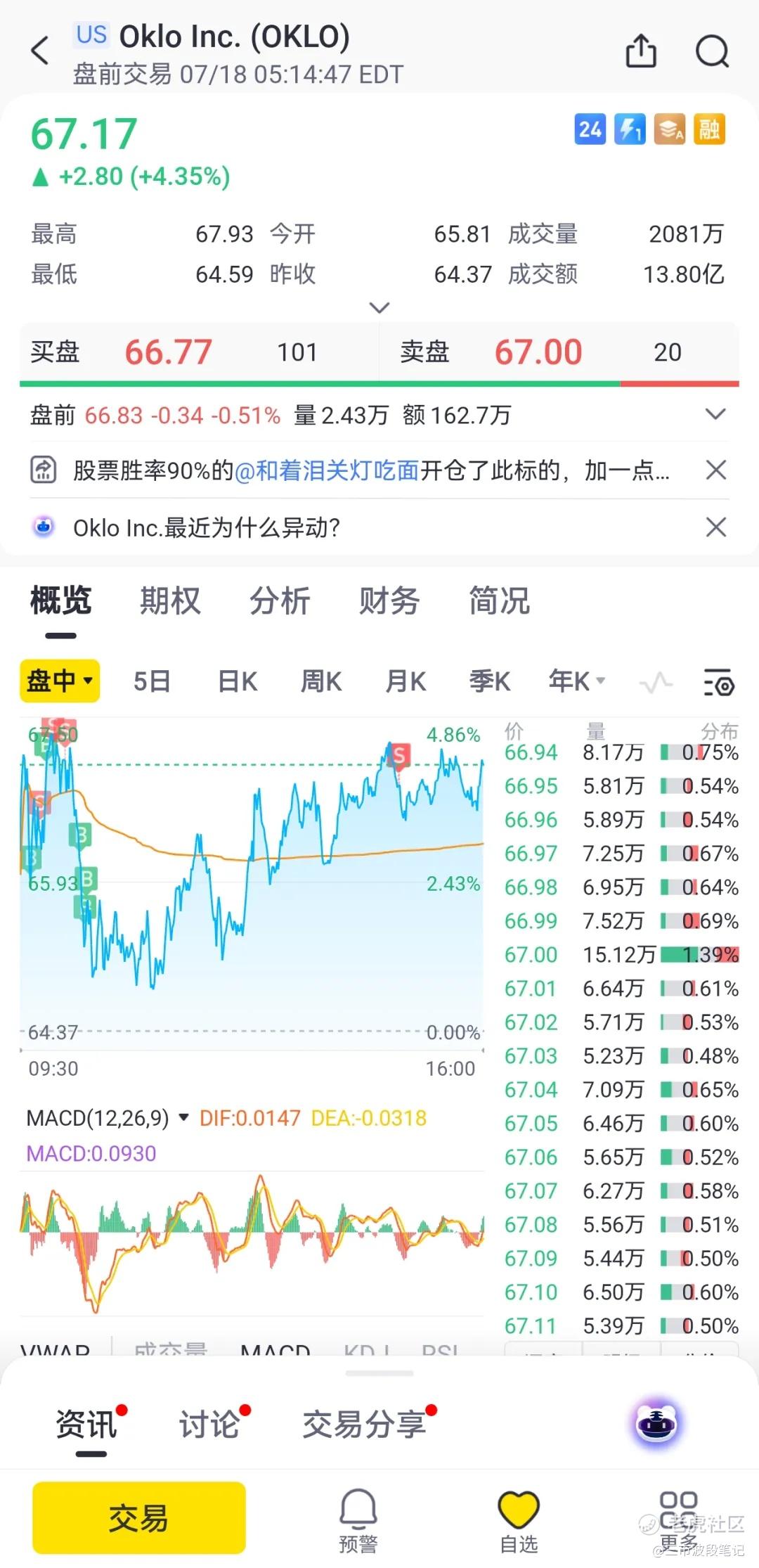 接下来的操作就是,盘前基本出清了CRWV,留了一点底仓,切到了OKLO。