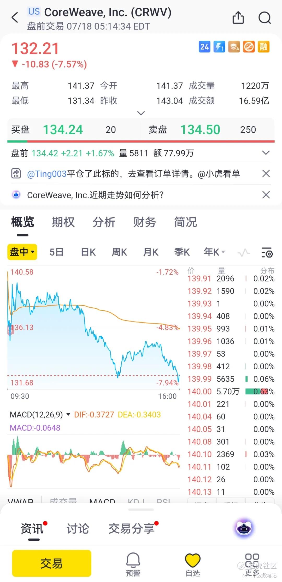 盘中割掉剩余的CRWV,通过数次交易,把当日浮亏扭转成正向盈利。