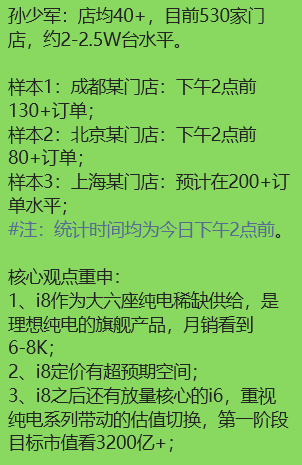 原因其实就是一个---i8订单好,然后孙少军又确认了i8订单很好