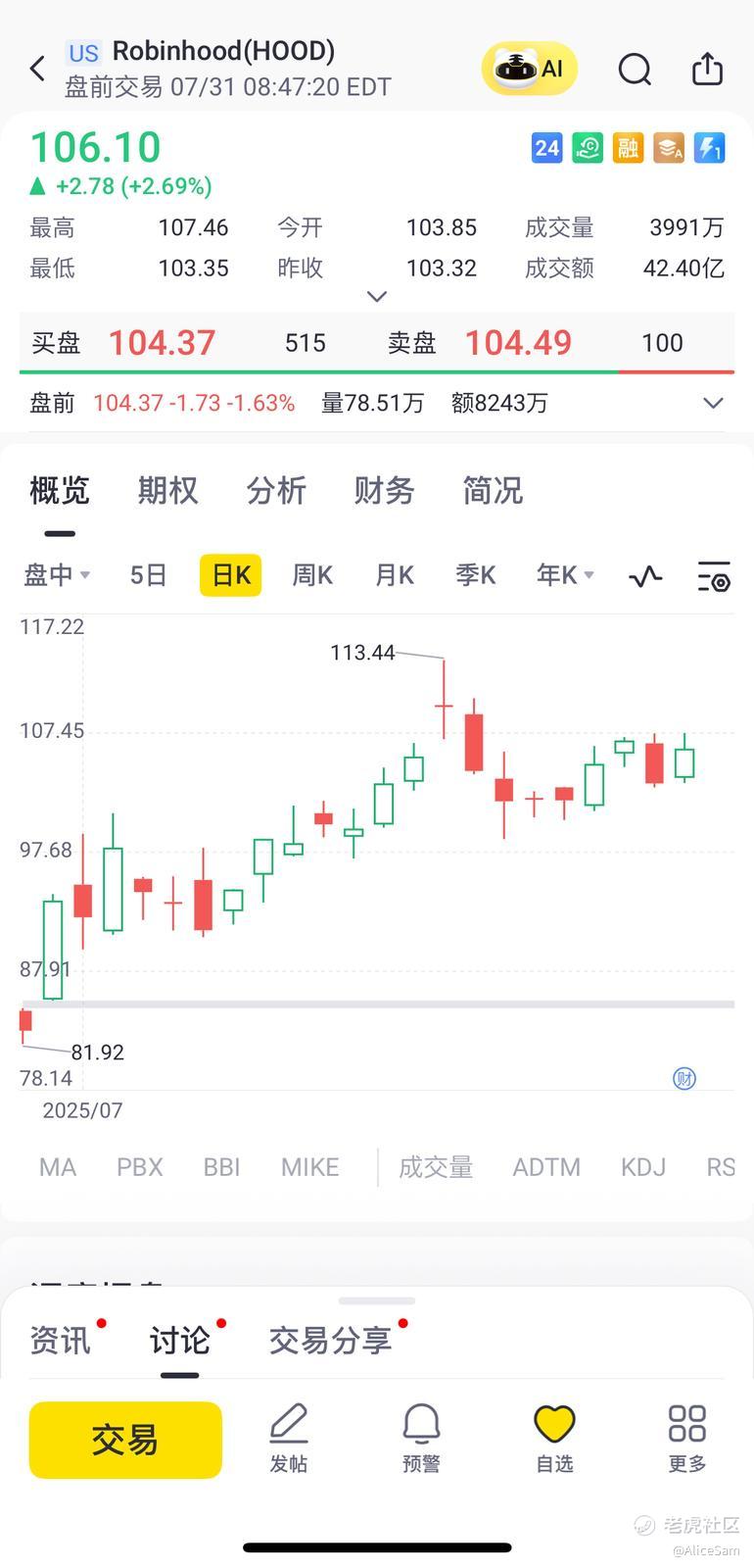如果你是长期投资者(如我这种偏好风格):Robinhood展现出强劲的增长潜力和清晰的战略方向,尤其在理财和国际化方面的布局值得关注。尽管估值偏高,但其“Rule of 40”指标(营收增长+利润率)达112%,显示出极强的运营效率。若我愿意持有3年以上,当前价格仍具吸引力。