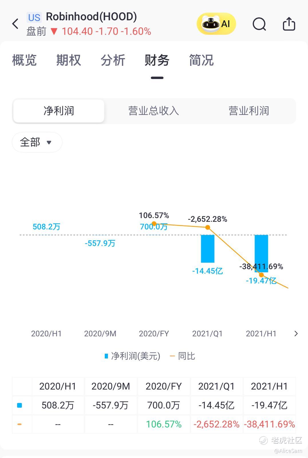 HOOD这个季度的净利润为 3.86亿美元,同比增长105%,调整后EBITDA为 5.49亿美元,同比增长82%,利润率达56%。