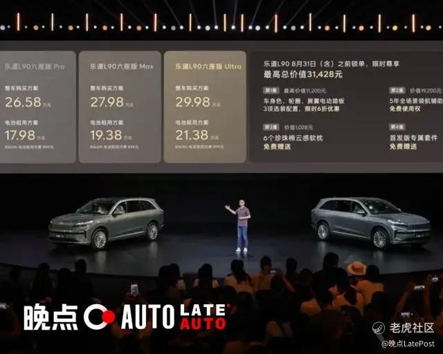 不管是半个月前的 L90 产品技术发布会,还是现在的上市发布会,高潮部分都在发布价格时。L90 共分为 Pro、Max、Ultra 三个版本,最终起售价为 26.58 万元,BaaS 版起售价为 17.98 万元,比预售价还要再低 1.41 万元。L90 这次还推出了 7 座版本,Pro、Max 版本相比 6 座版都贵 6000 元,Ultra 版价格一致。