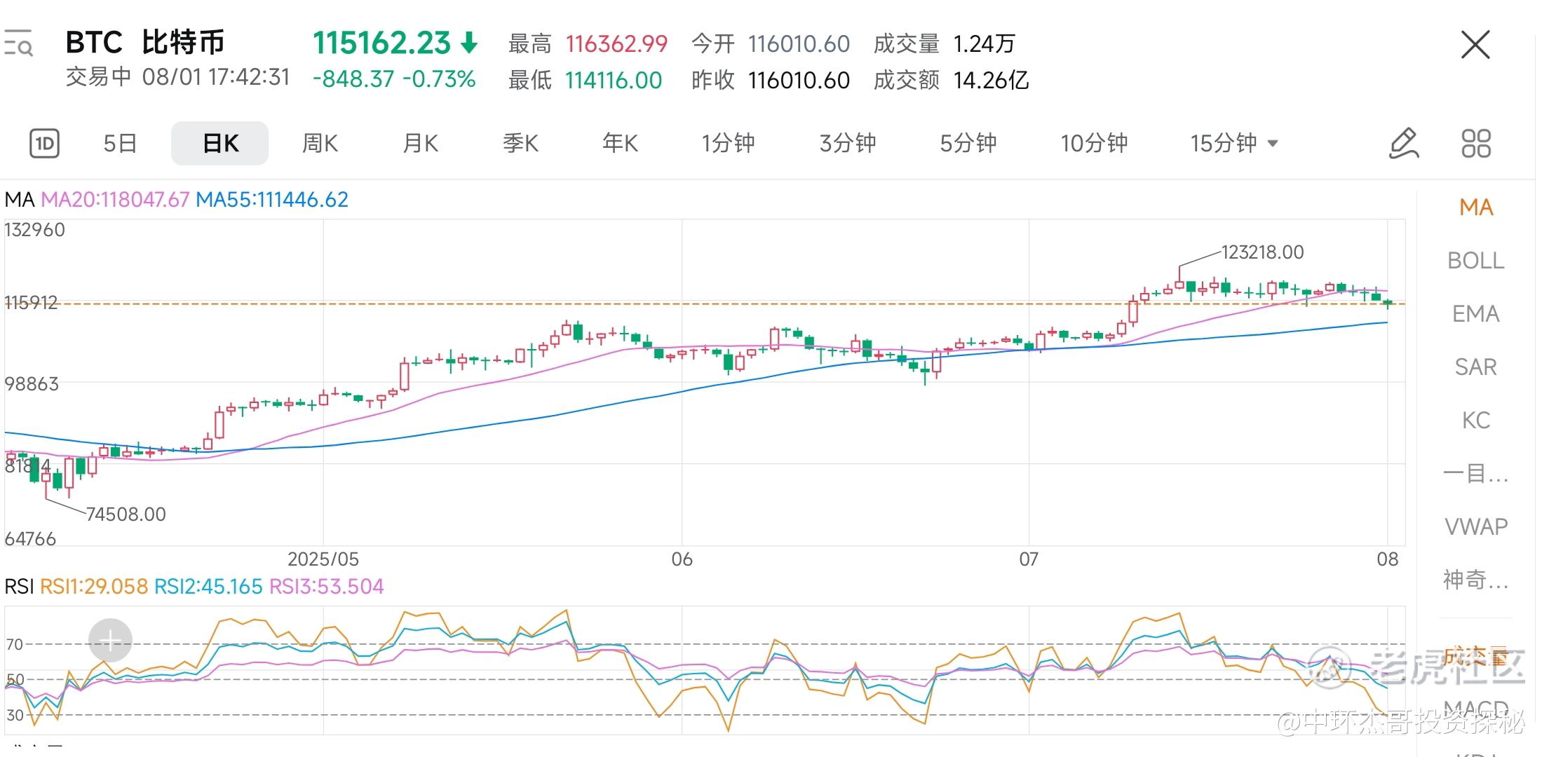 美股,在8/1的窗口期,受到多重因素的影响,顺势调整算是比较正常的一个反应,至于说会不会引发中级调整,目前看,调整还算是正常节奏,中级调整的可能性还不大,但也不会完全排除。所以,我们下面会详细分析。港股,波动就要大很多,已经在测试之前的上轨位置,如果已走就观察,如果还在就等反弹后再做进一步决定。