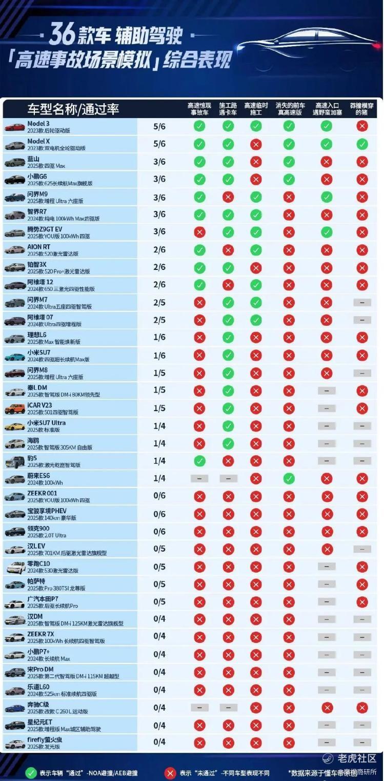 近日,懂车帝联合央视,对36款将智驾作为卖点的主流车型进行了极端危险场景测试,结果很惨烈,平均通过率不到40%。