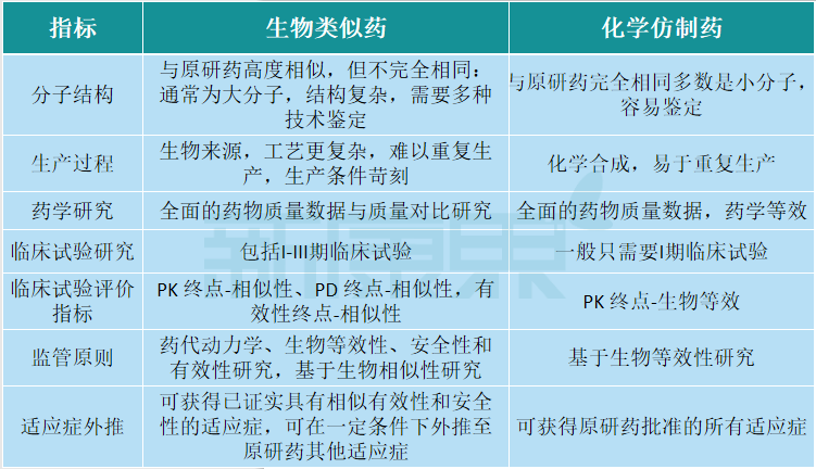 化学仿制药跟原研药的小分子完全相同,标准好统一,易于合成且成本较低。生物类似药跟原研药高度相似,但不尽相同,结构复杂生产条件和工艺要求都比较苛刻。因此,在很多创新药企发展的起步阶段或者在传统药企的转型阶段,往往会以生物类似药“仿制”一些畅销的产品。