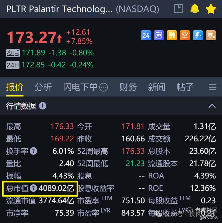 Palantir市值突破4000亿美元,树能长到天上去吗?