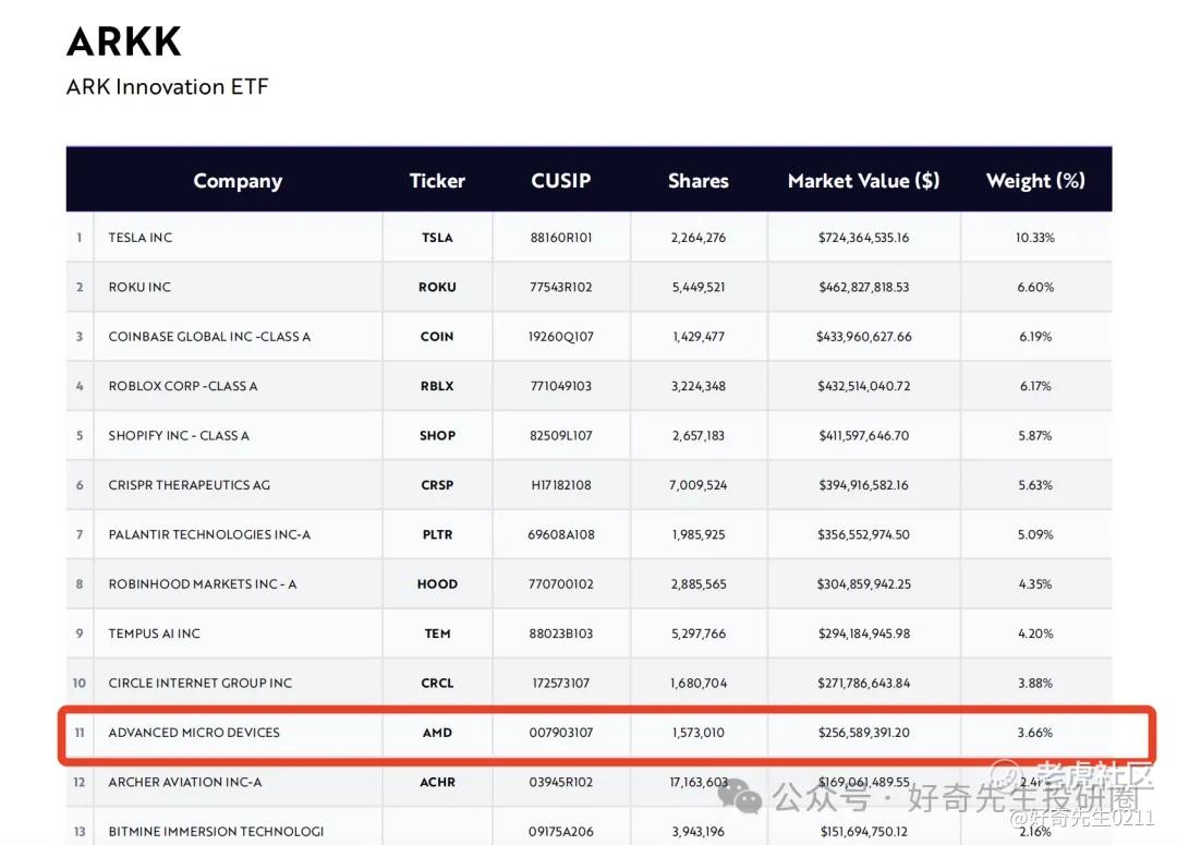 木头姐的ETF ARKK今年业绩表现还可以,年初至今涨幅接近30%。她一直投资的是前瞻性的科技领域,这一次大举买入说明她也看好AMD在AI数据中心领域的潜力。昨天视频里我也提到过,众多巨头微软、META、OpenAI都采购了AMD的GPU。