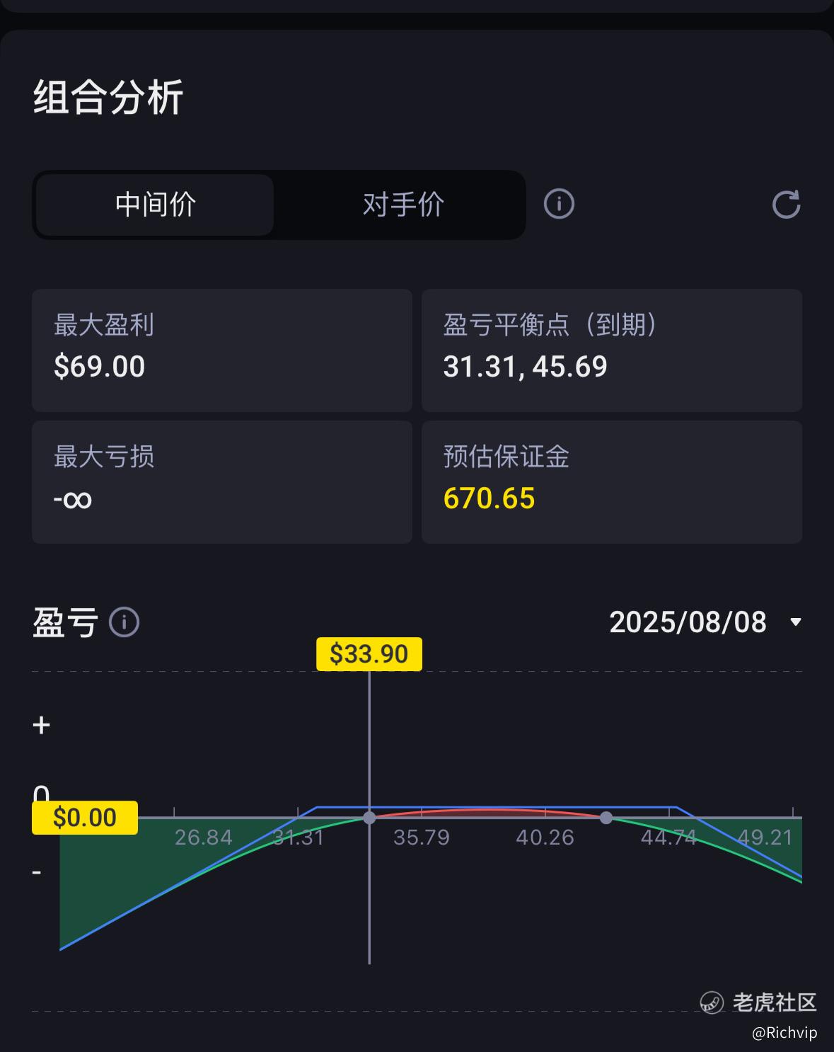 空头宽跨式sell pins2025080845 call+ pins sell2025080832 put